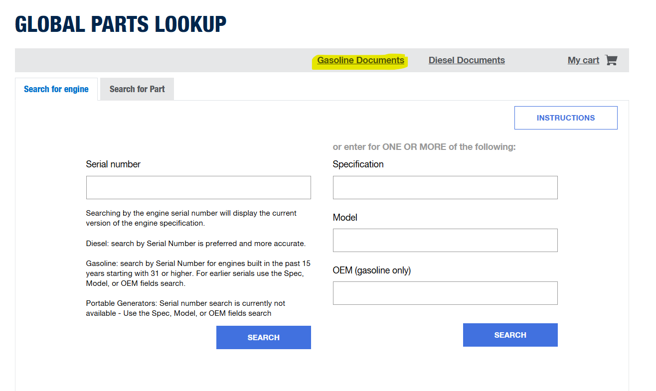 The video below is a quick walk through for Gasoline engines. After logging in to https://partnersportal.kohlerpower.it/ navigate to the "Gasoline Documents" link at the top of the search page instead of searching for a model or serial.